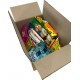 Brown packing box (Care Package/ Snack Pack/ Gift) filled with: